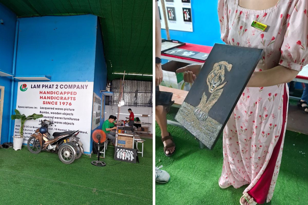 Before going to the actual Cu Chi Tunnels site, we stopped by the Lam Phat 2 Company. It produces seashell and lacquered eggshell handicrafts made by the victims of Agent Orange, a herbicide used by the US Military during the Vietnam War.